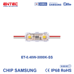 - Chip LED sử dụng là chip LED Sam Sung có chất lượng cao, được nghiên cứu kỹ càng, là một bộ phận không thể thiếu đóng vai trò rất quan trọng giúp phát sáng và quyết định ánh sáng của module. Và LED 2 bóng sử dụng chip 2835.