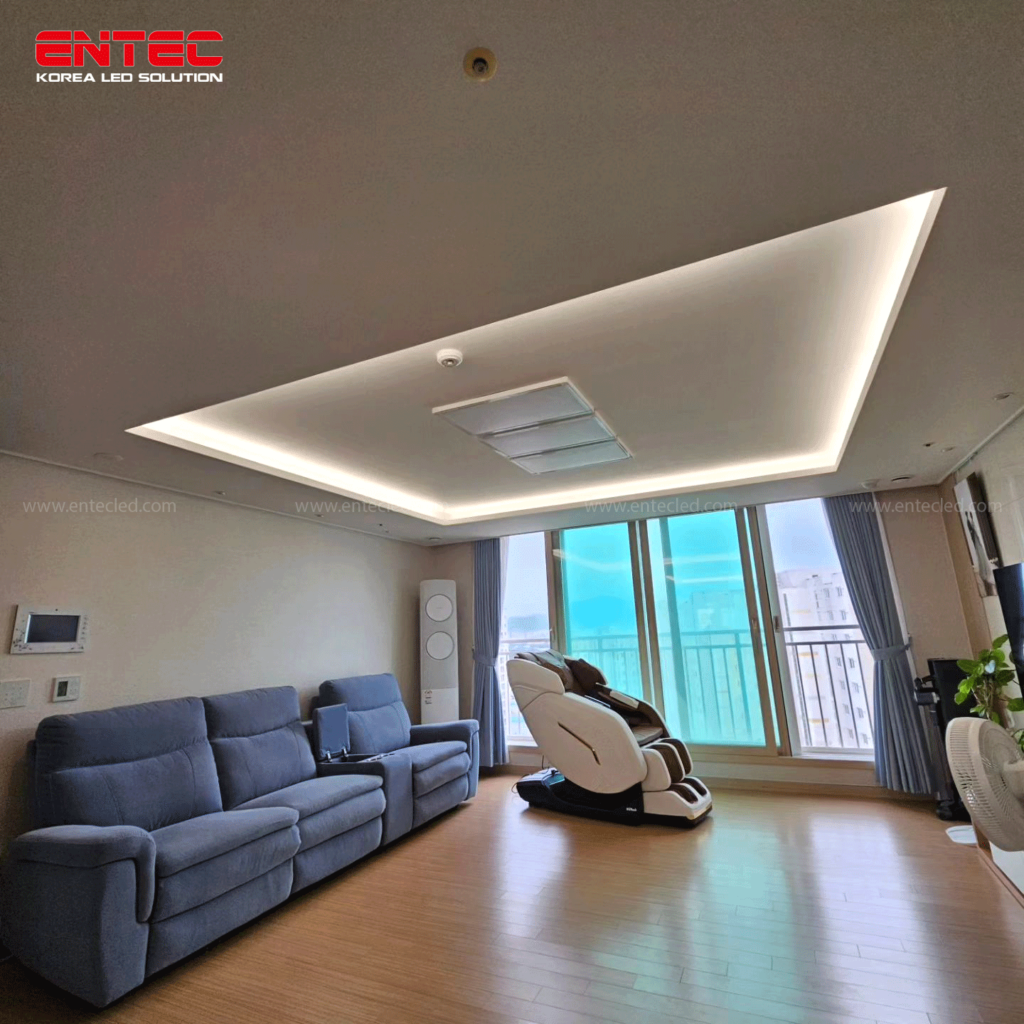 Trần thạch cao thường có các khe rãnh tạo điểm nhấn, đây là nơi lý tưởng để sử dụng đèn LED dây thế hệ mới.